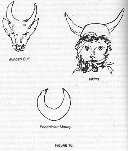 The pair of joined bull's horns symbolized that the particular ship carried real-wealth tradersthat there were cattle on board to be exchanged for local-wealth items. The Norsemen with their paired-horn headdress were the Phoenician, Veenetian, Veeking (spelled Viking but pronounced "Veeking" by the Vikings). Veenetians, Phoenicians. (Punitians, Puntits, Pundits. Punic Wars. Punt = boat = the boat people. Pun in some African Colored languages means "red," as in Red Sea.). The Veekings were simply the northernmost European traders. The Veekings, Veenitians, Feenicians, Friesiansi.e., Phoenicians, Portuguesewere cross-breeding water-world people.