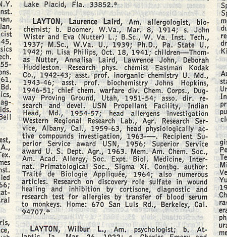From Marquis "World Who's Who In Science" (1968)